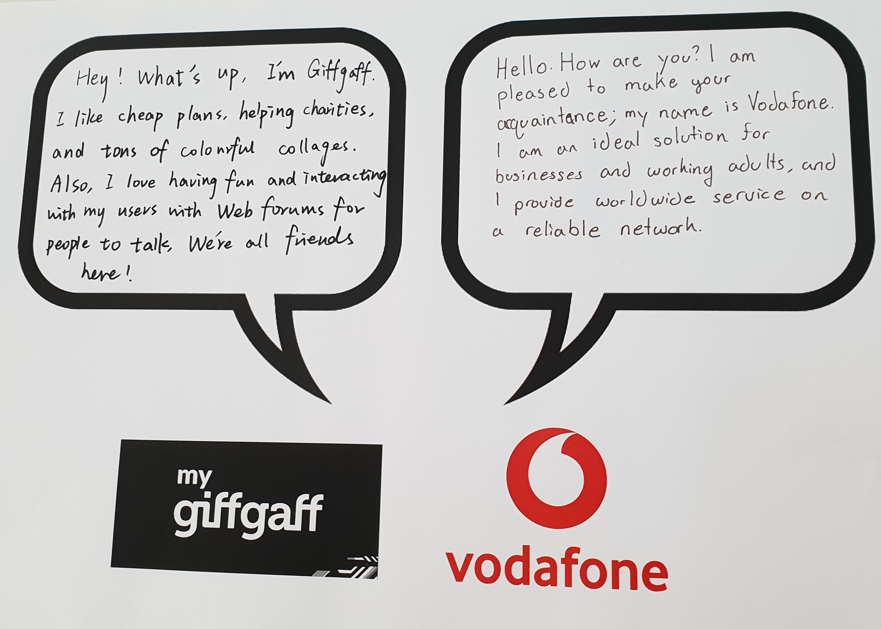 In class, we completed worksheets which fully exemplified these brand mythologies, such as our example of Vodafone versus Giffgaff.